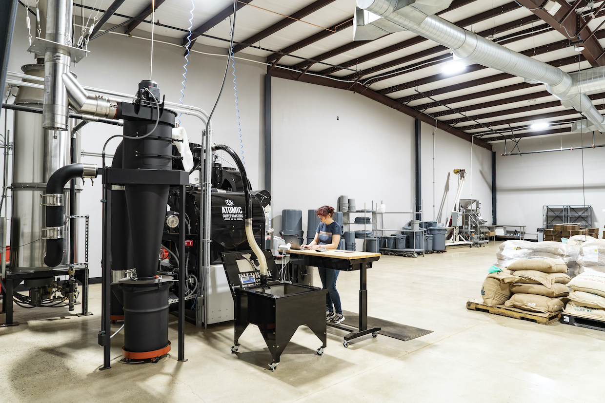 Within that time frame, the Atomic team installed a garage door and opened two walls to make way for the roaster, while replacing the bounce house’s former “cosmic” carpeting with suitable production flooring and other interior renovations.