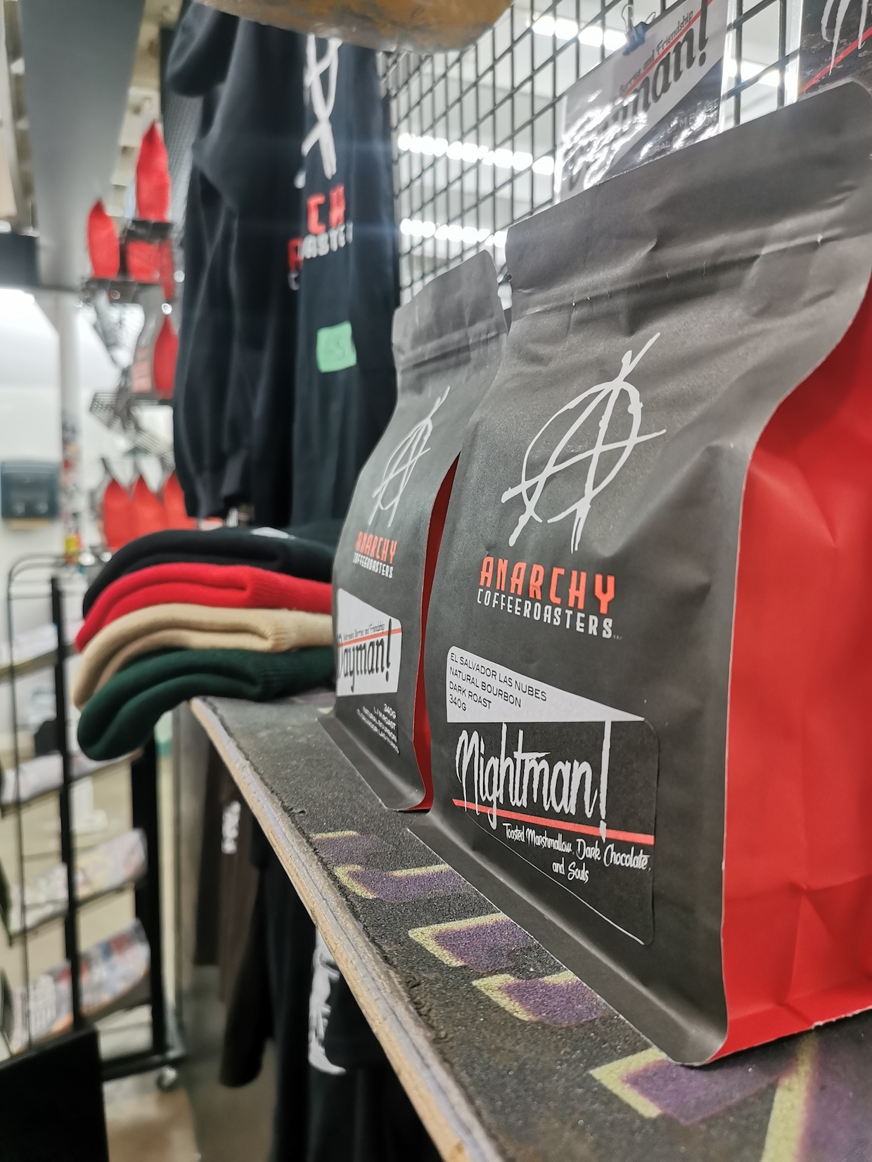 Anarchy Coffee Roasters Co-Owner and Head Roaster Bailey Mitchell told Daily Coffee News that he and co-owner Jesse Nelson took a largely DIY approach to the buildout, which happens to fit the brand just right.